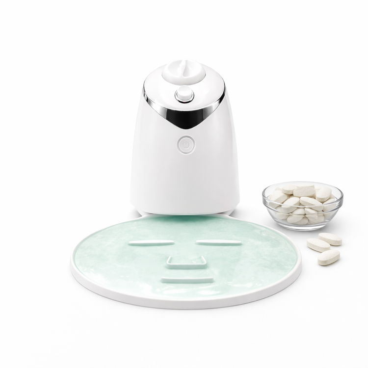 Your kit includes the smart mask machine, collagen tablets, and facial mold tray — so you can begin creating fresh masks right away.