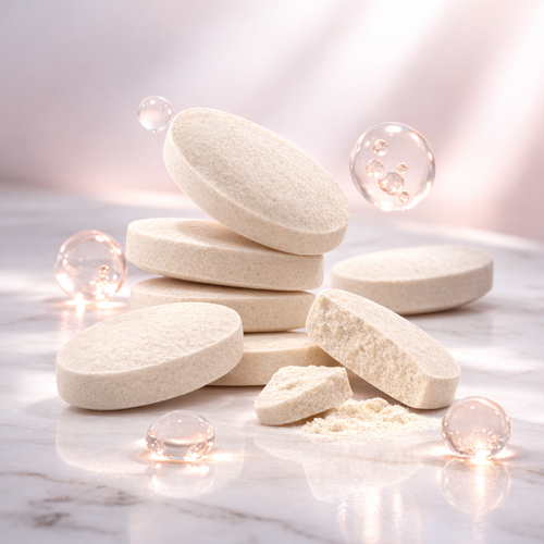 The GlowLabs™ system transforms liquid skincare ingredients into a fresh hydrogel face mask in minutes. Simply add water, your chosen ingredients, and a GlowLabs collagen tablet. The machine gently mixes and heats the formula before pouring it into the mask mold, where it cools and forms a flexible hydrogel sheet mask ready to apply.